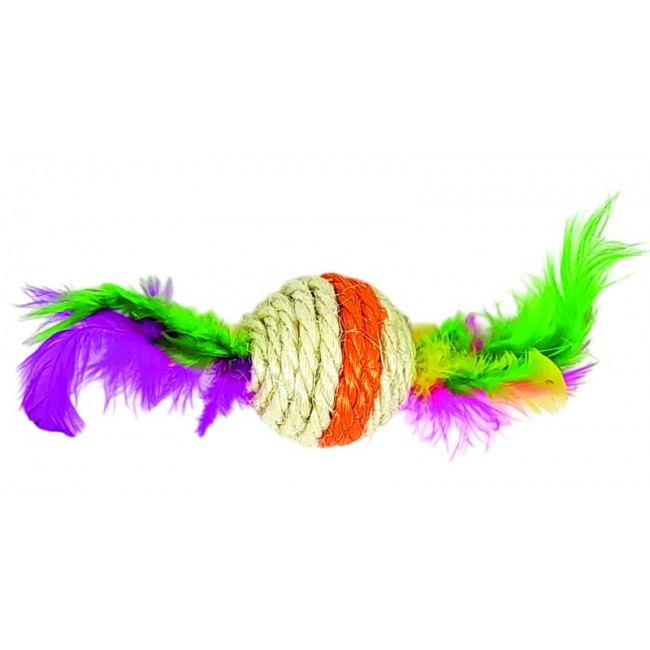 • Bola Interativa para Gatos com Sisal e Penas na Laterais Animalissimo