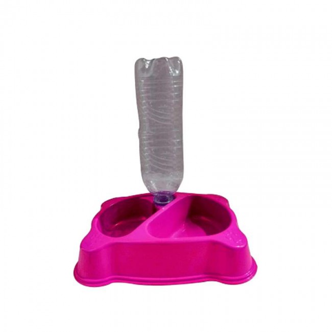 • Comedouro Duplo com entrada p/ Garrafa Pet Rosa - 1200ml