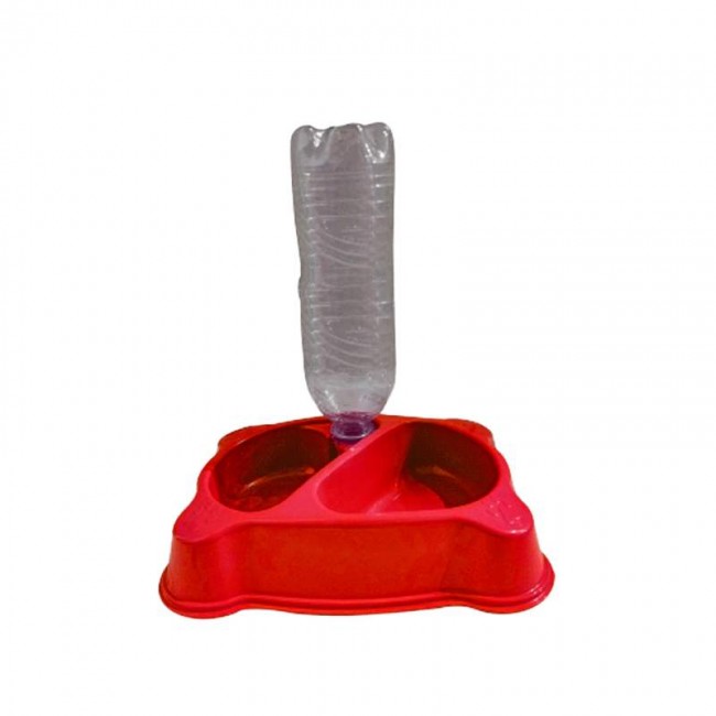 • Comedouro Duplo com entrada p/ Garrafa Pet Vermelho - 1200ml