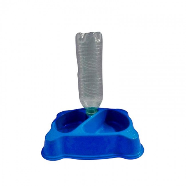 • Comedouro Duplo com entrada p/ Garrafa Pet Azul - 500ml