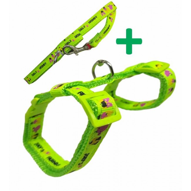 • Conjunto Guia e Peitoral P/ Gatos Estampada Animalissimo