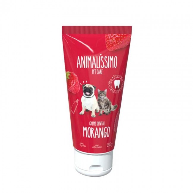 • Creme Gel Dental P/ Cães e Gatos Sabor Morango Animalissimo - 60g