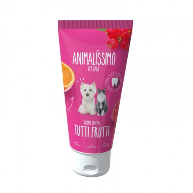• Creme Gel Dental P/ Cães e Gatos Sabor Tutti Frutti Animalissimo - 60g