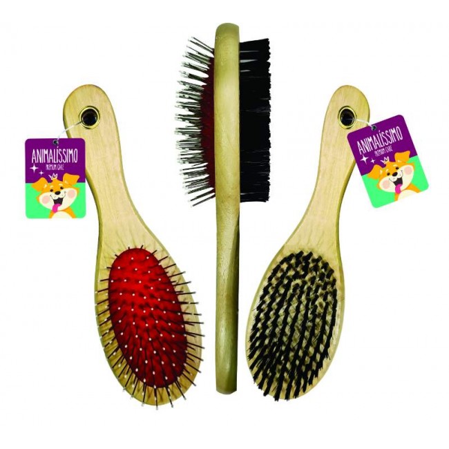• Escova Dupla Cabo de Madeira P/ Cães Animalissimo - Tam P