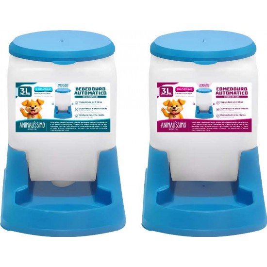 • KIT COMEDOURO+BEBEDOURO PRATIC 3L AZUL