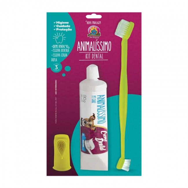 • Kit Higiene Bucal Completo P/ Cães Creme + Escova + Dedeira Animalissimo