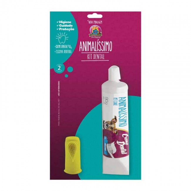 • Kit Higiene Bucal P/ Cães Creme + Dedeira Animalissimo