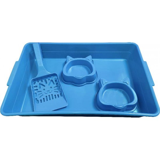 • Kit Higiênico P/ Gatos Bandeja + Comedouro + Pazinha Animalissimo - Azul