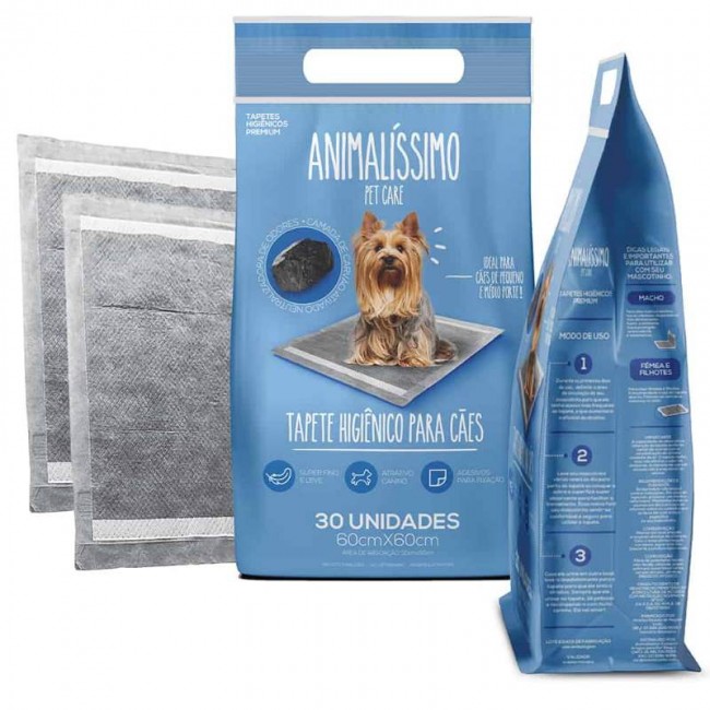 • Tapete Higiênico Animalissimo Carbon para Cães 60x60cm - 30 uni
