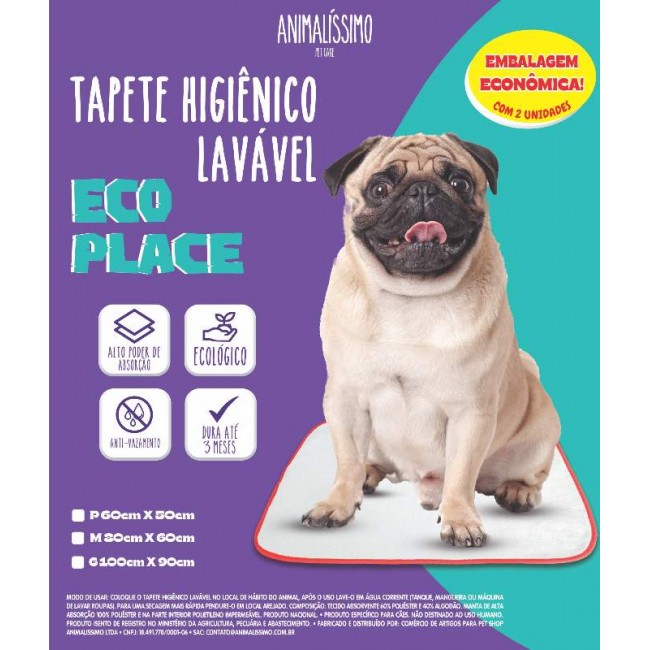 • Tapete Higiênico Lavavel Animalissimo Eco Place com 2 uni - Tam M 80x60