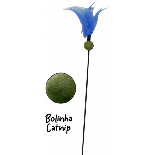• VARINHA C/BOLA CATNIP E PENAS 65CM